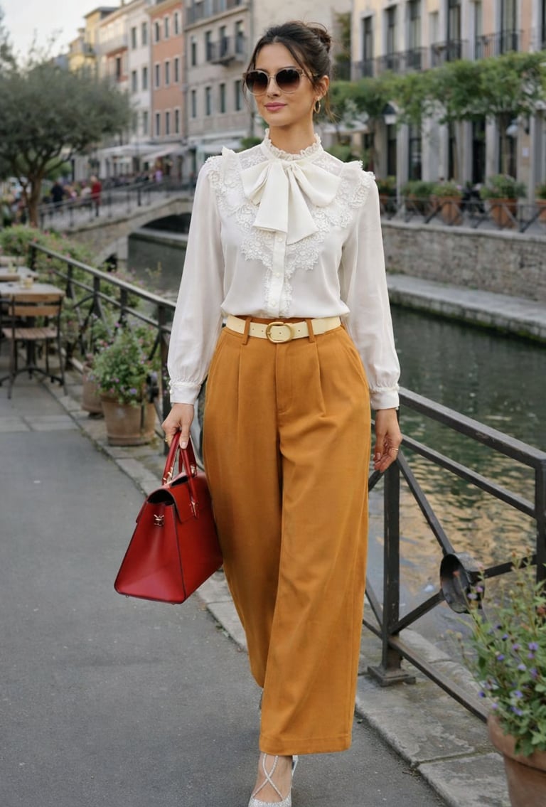 The flowy movement of the pants combined with a dressy top creates an elegant silhouette—perfect for occasions where you want to look sophisticated without wearing a dress.