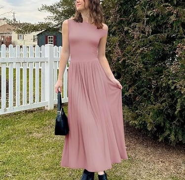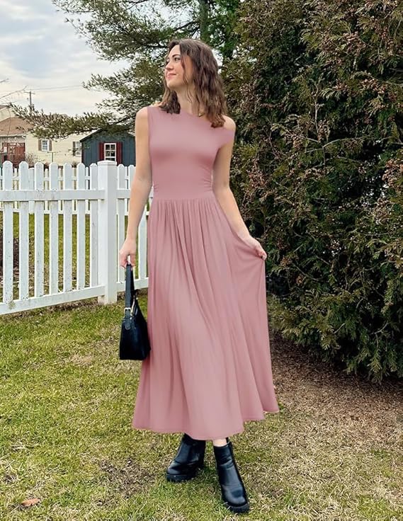 ZESICA Women's Summer 2026 Sleeveless Maxi Dress One Shoulder Casual Slim Swing Pleated Formal Dresses with Pockets