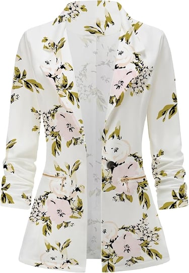 Genhoo Women's Long Sleeve Blazer Open Front Cardigan Jacket Work Office Blazer with Zipper Pockets